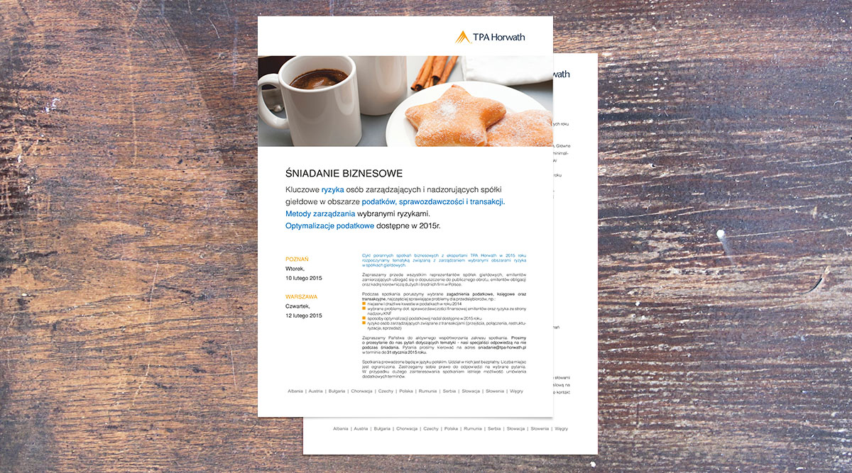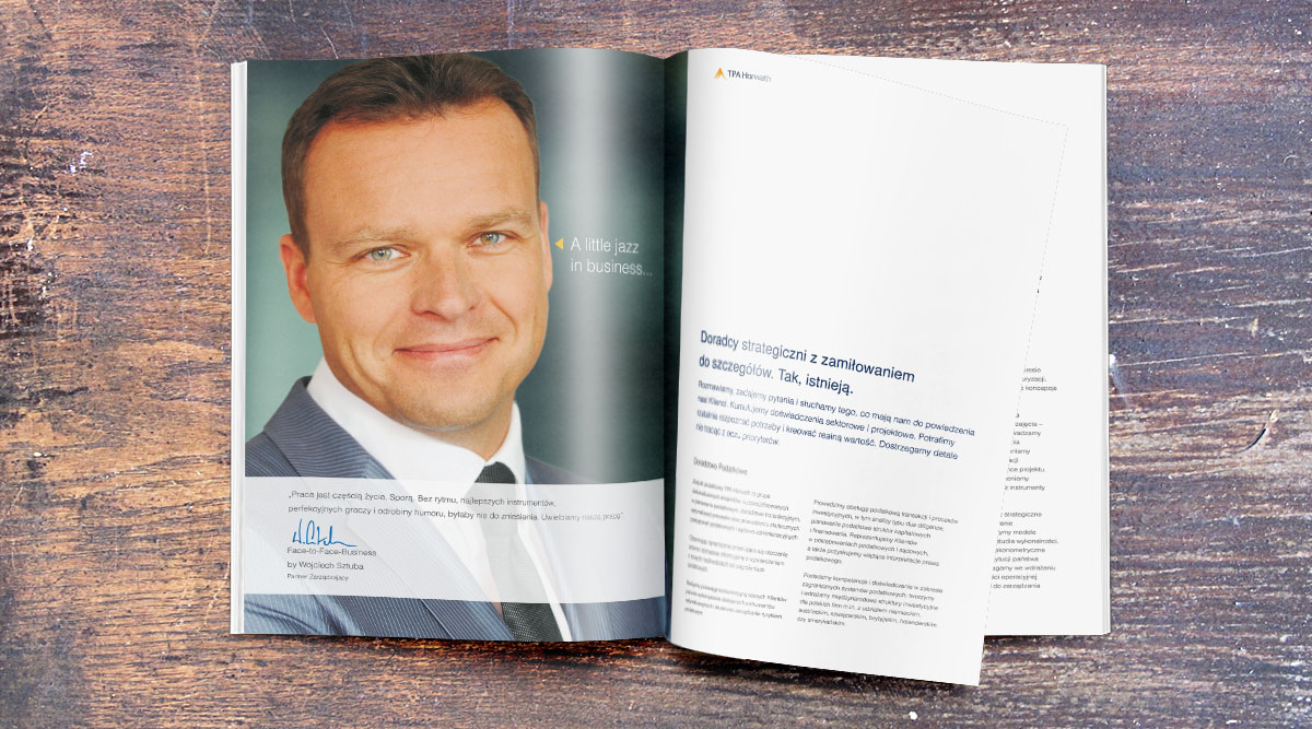 W latach 2010 - 2016 byłem odpowiedzialny za adoptowanie globalnych materiałów marketingowych dostarczanych przez austriacką centralę firmy TPA Group. Przygotowywałem od podstaw projekty na polski rynek. Projektowałem drafty broszur dla oddziałów firmy w całej Europie.